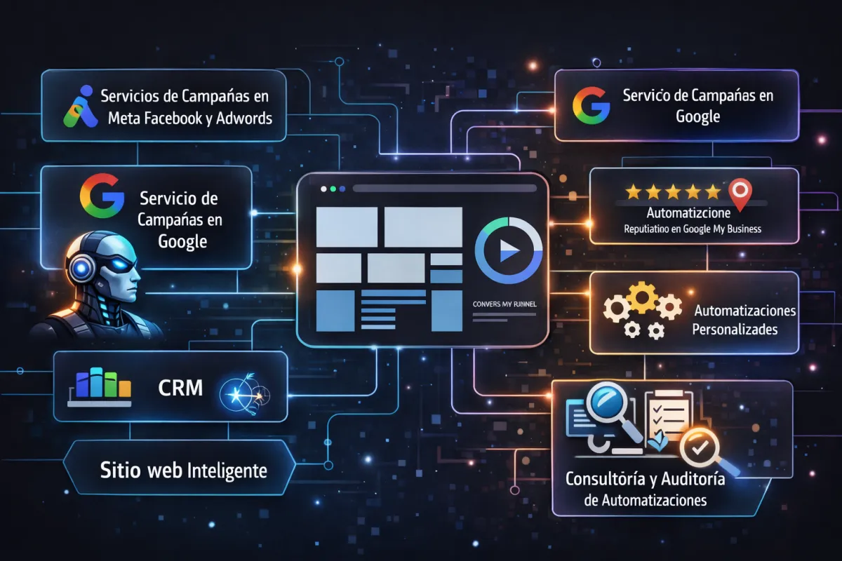 Diseñamos sistemas automatizados de captación y conversión que trabajan 24/7. No vendemos páginas sueltas ni campañas aisladas: creamos un ecosistema digital que convierte tráfico en conversaciones, citas y ventas con seguimiento automático.